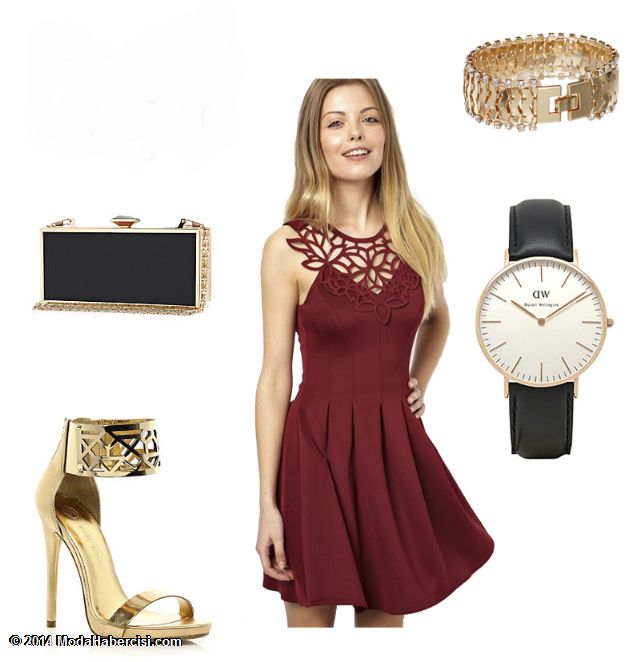 Yılbaşı yaklaşıyor. Kıyafetinizi seçmek için oldukça zamanınız var. Yılbaşının vazgeçilmezi bordo - kırmızı tonlarını da tercih edebilirsiniz. Altın rengi taşlı ayakkabılar bordo tonlarındaki elbiselerinizle uyumlu olacaktır. Hafif spor görünüm için siyah kayışlı sade saatleri tercih edin. Daha çok şık görünmesini istiyorsanız. Parlak altın tonlarındaki bilekliğinizi ve siyah portföy çantanızı yanınızdan ayırmayın.